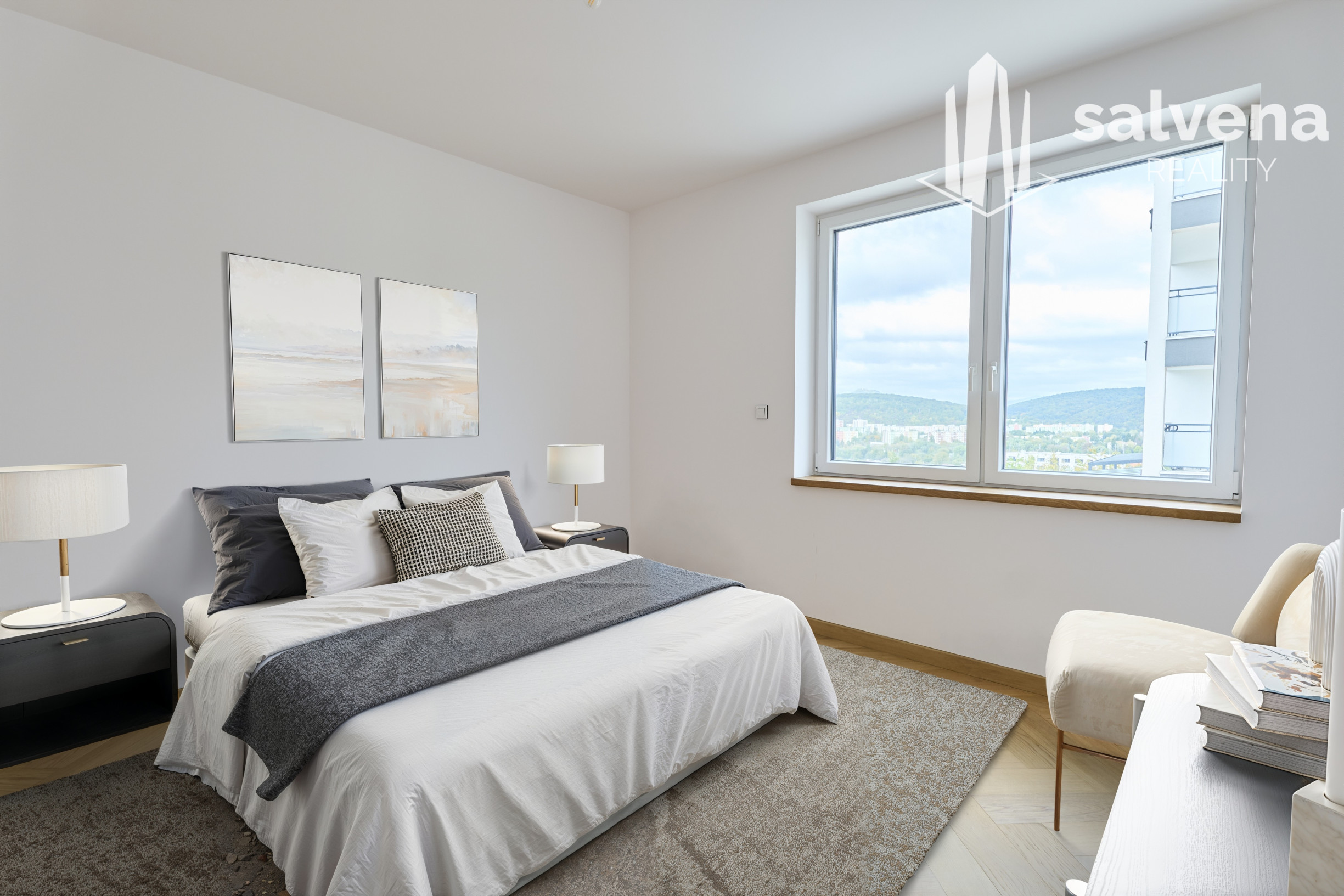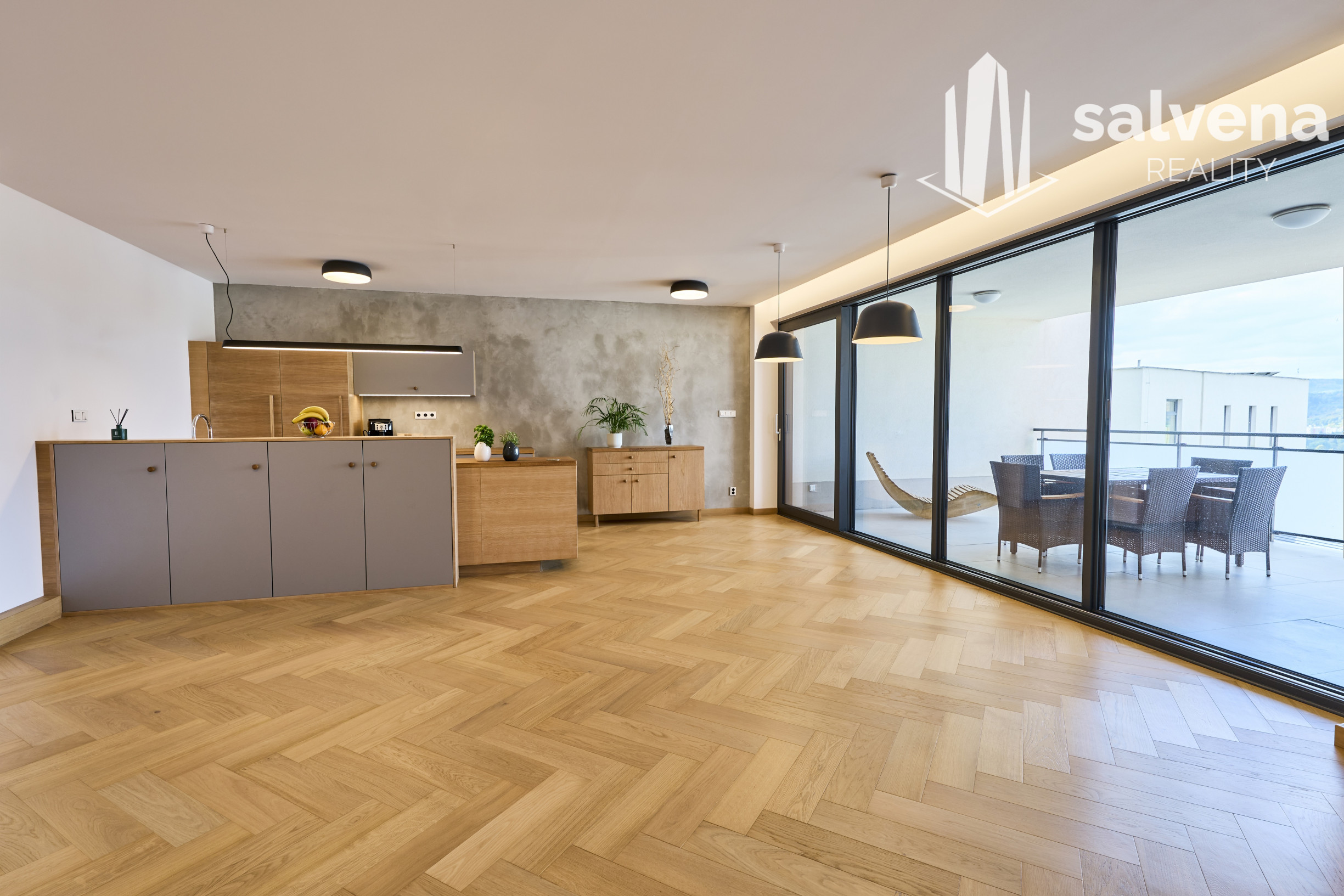 Keď sa sklo zasunie a mesto sa otvorí pod vašimi nohami, pochopíte. Toto nie je „trojizbák“. Toto je 114 m² energie, ktorú cítite v kostiach; 22,5 m² terasy – súkromnej lóže s panorámou, kde sa podpisujú dohody, nalieva espresso a večer padá svetlo na parkety ako v dobrej scéne z filmu. Čisté línie, remeslo, vlastné kúrenie Vaillant. Všetko pod kontrolou. Bez kompromisov.